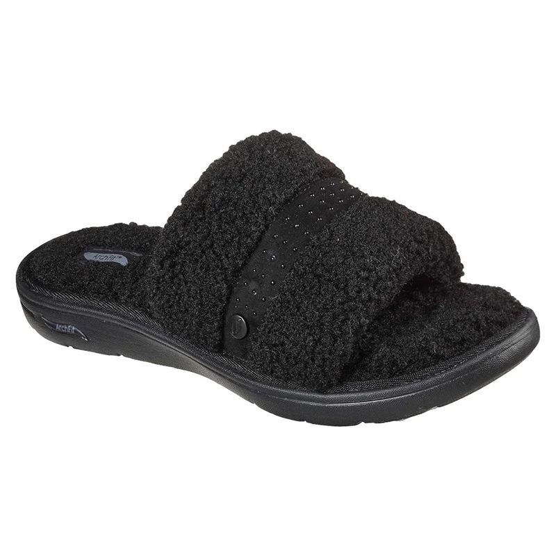 Supportive comfort gets a plush and cozy update in GO Lounge; Arch Fit; Lounge – Snuggle Down. This comfort slide sandal features a plush sherpa upper, Arch Fit; comfort cushioned footbed and a lightweight ULTRA GO; cushioned midsole.
