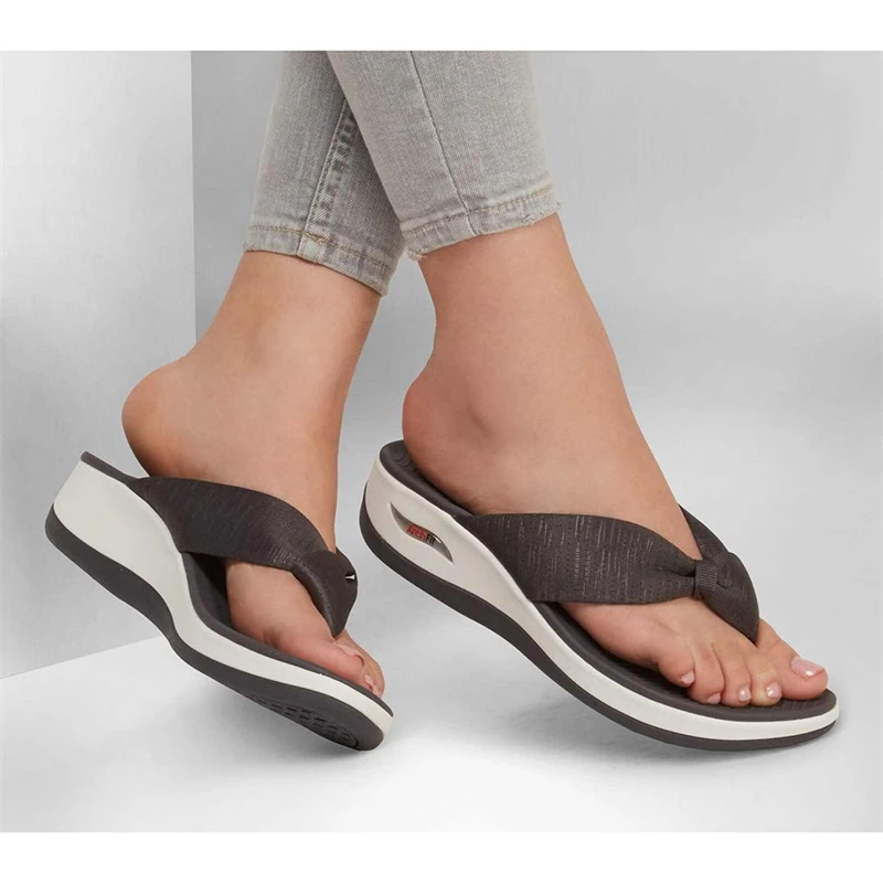 Take comfort in a versatile warm weather look with the Arch Fit Sunshine – My Life sandal. This comfort thong sandal features a soft jersey fabric upper with supportive Arch Fit contoured footbed.
