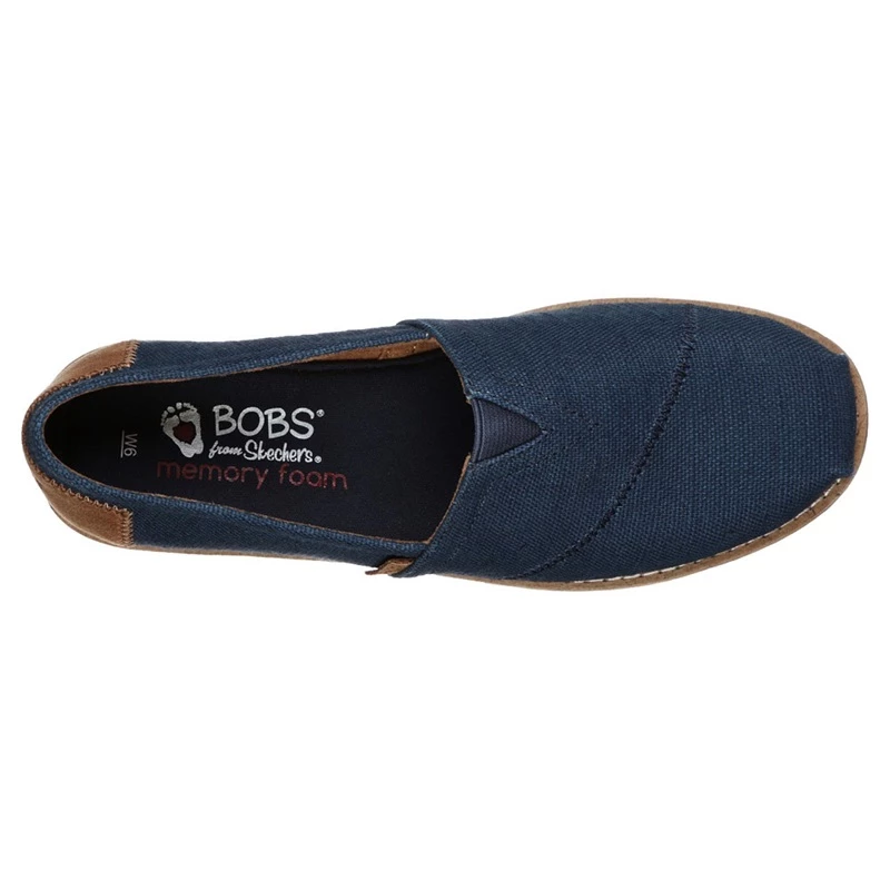 Soft woven canvas fabric upper with warmer weave design.Smooth microfiber fabric heel panel with leather-texture finish.Slip on casual alpargata flat design.Stitching accents.Tucked toe pleat front.Diagonal stitched seam front detail.Heel panel overlay with stitched edging trim.BOBS logo details on side and heel.Top elastic fabric panel for easy slip on fit.Soft fabric shoe lining.Memory Foam cushioned comfort insole.Stitched topsole trim detail.Soft supportive flexible midsole and outsole.Crepe textured rubber traction outsole for added comfort.1/4 inch heel.BOBS helps make a difference for animals and kids.Learn more about Skechers’ donations to animals and children in need here