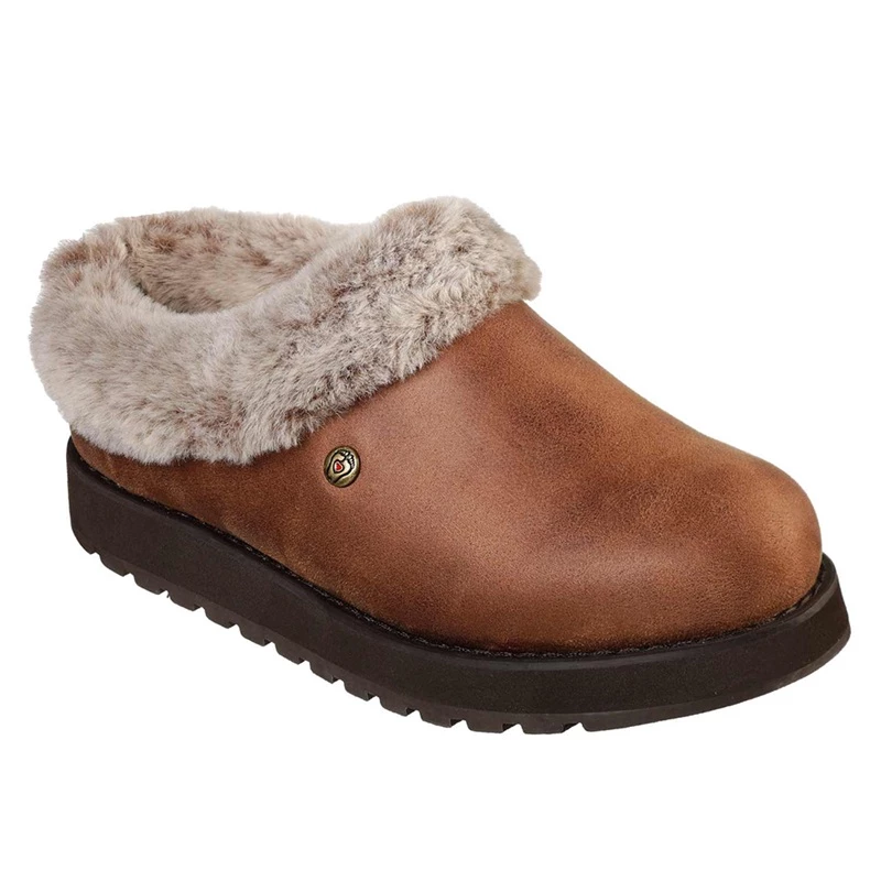 Your dreams of cool weather style and snuggly comfort come true in the BOBS from ; Keepsakes – R E M shoe. This slip-on comfort clog features a smooth leather-textured microfiber upper with faux-fur lining and cushioned Memory Foam footbed. For every BOBS purchase, a donation is made to animals in need.