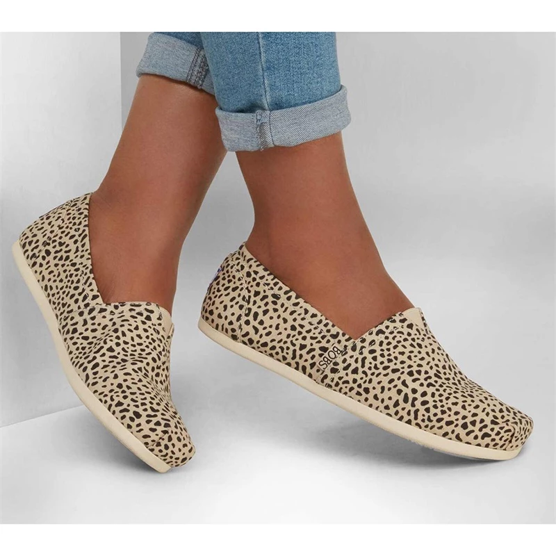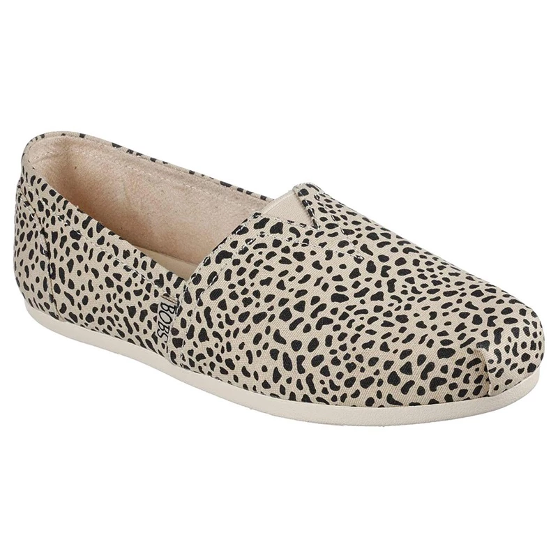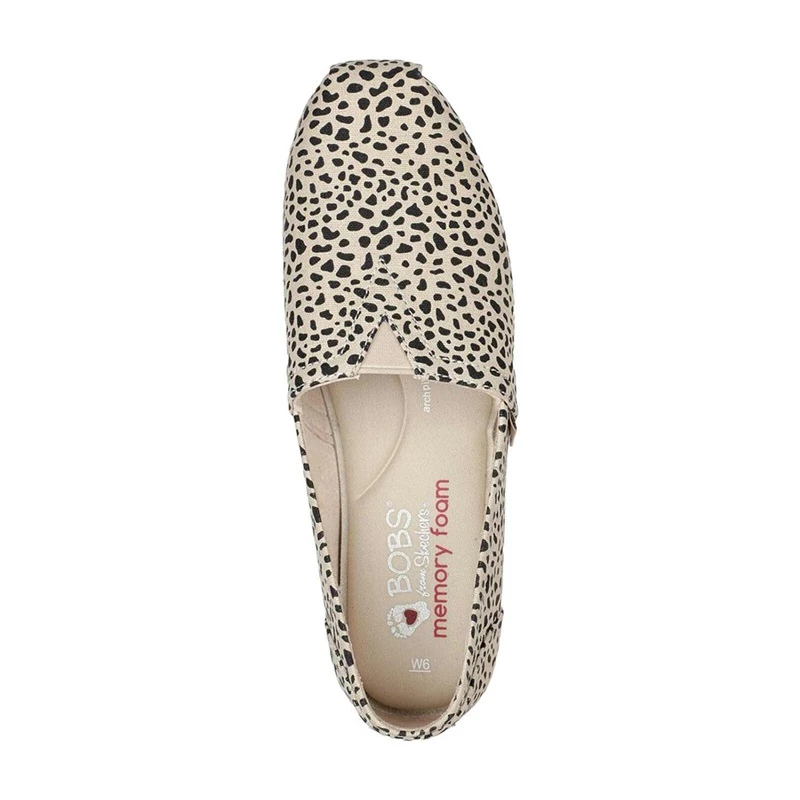 Embrace your cattitude wearing BOBS from ; Plush – Cat Queen. This casual slip-on flat features a leopard print linen upper with a cushioned Memory Foam; insole. For every BOBS purchase, a donation is made to animals in need.