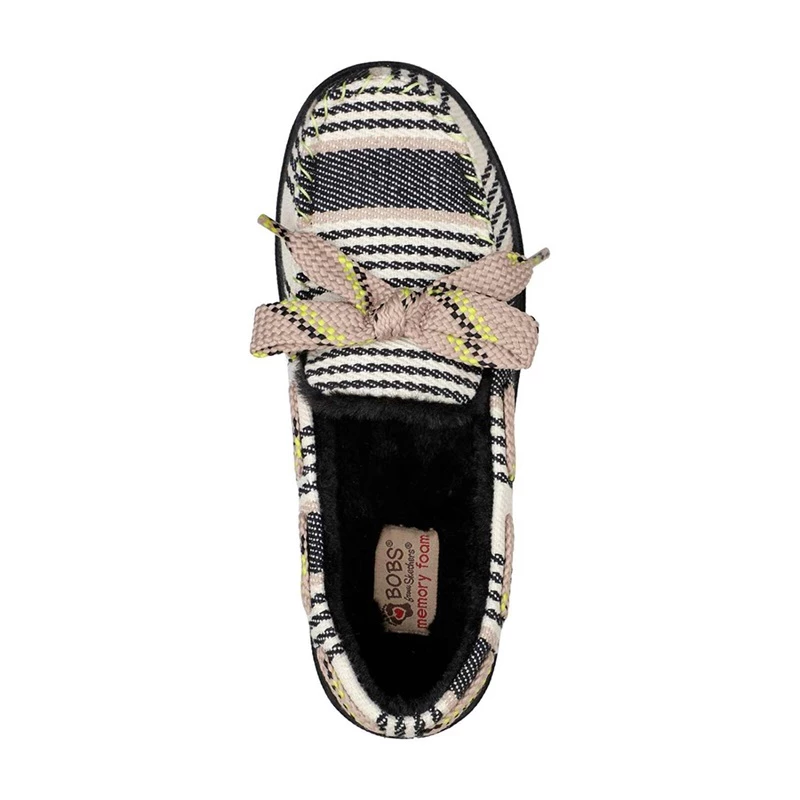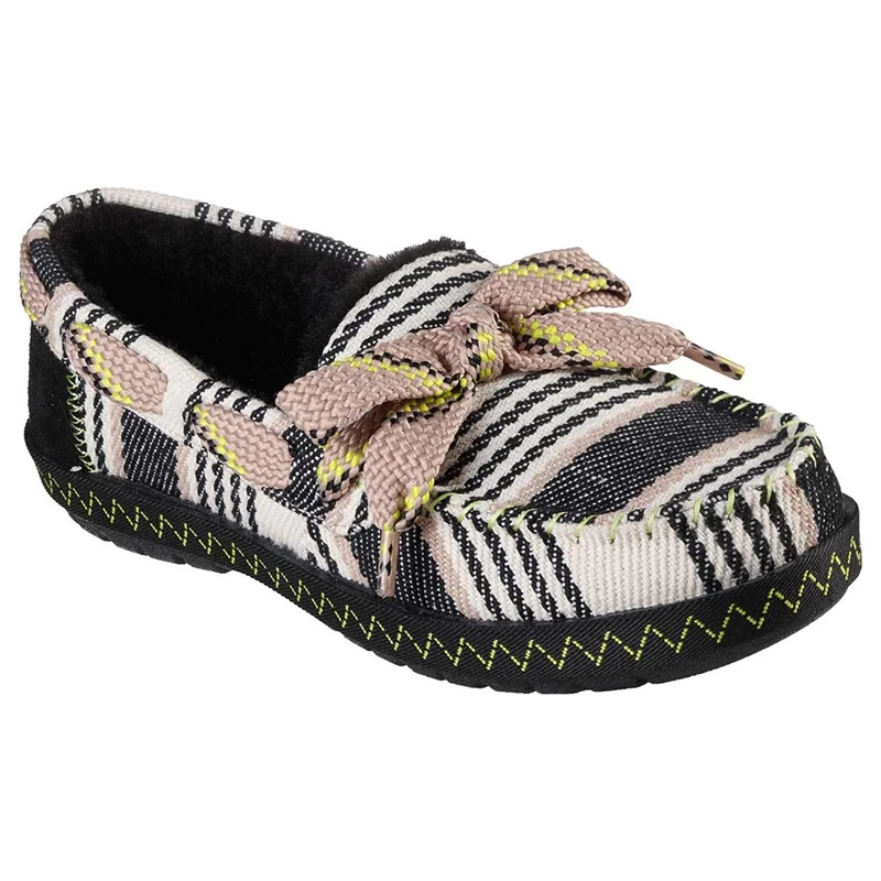 Warm comfort comes in a stylish look with BOBS from ; Too Cozy – Cozy Cool. This casual slipper features a soft woven Baja striped fabric upper with contrast detail, faux-fur trim and cushioned Memory Foam; footbed. For every BOBS purchase, a donation is made to animals in need.