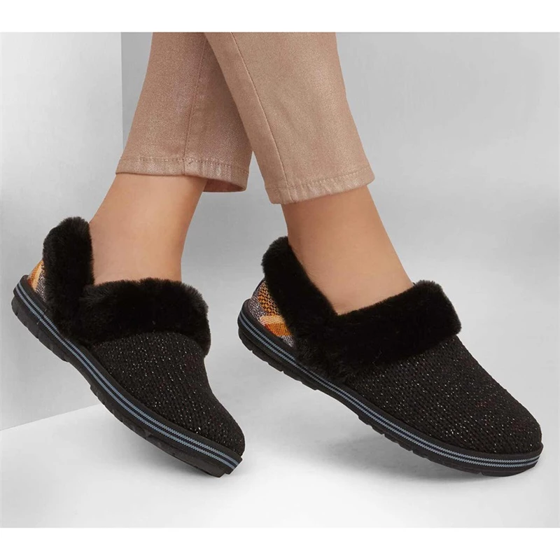 Mix it up this season in easy-wearing cozy comfort with BOBS from ; Too Cozy – Mixed Discovery. This casual slipper features a sweater knit upper with faux-fur trim and a cushioned Memory Foam; footbed. For every BOBS purchase, a donation is made to animals in need.