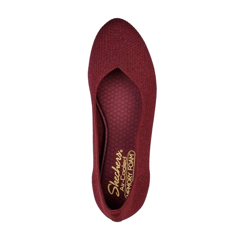 Glam up your look with standout comfort wearing Cleo; 2.0 – Shimmering. This Stretch Fit; skimmer flat features a woven upper with a sparkle knit trim and cushioned Air-Cooled Memory Foam; insole. Our Planet Matters; Good for your feet. Good for the world.;
