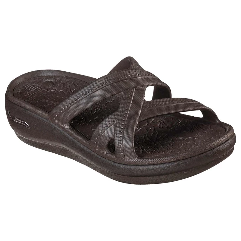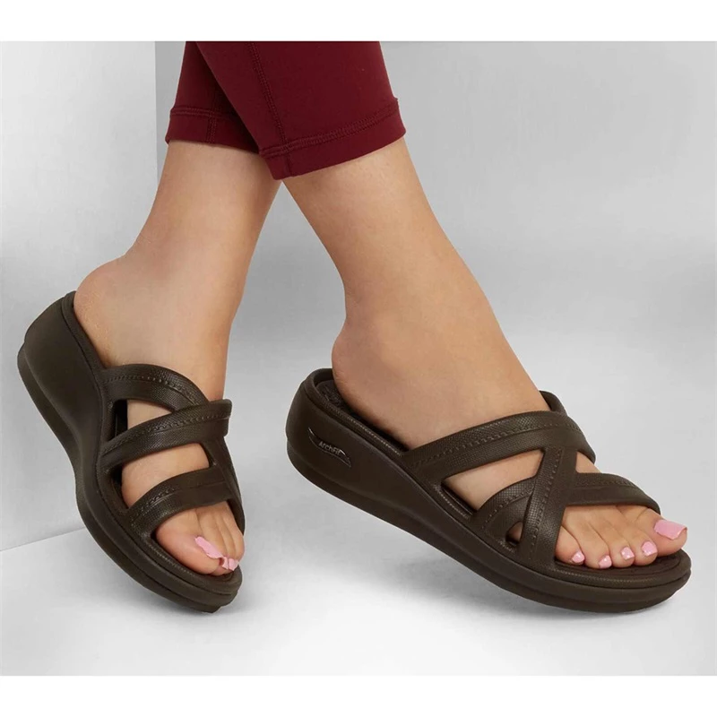 Supportive comfort is even easier to enjoy when wearing Foamies: Arch Fit; Ascend – Avenue. This sculpted strappy slide sandal features a flexible, adjustable strap with a Luxe Foam; and cushioned Arch Fit; footbed.