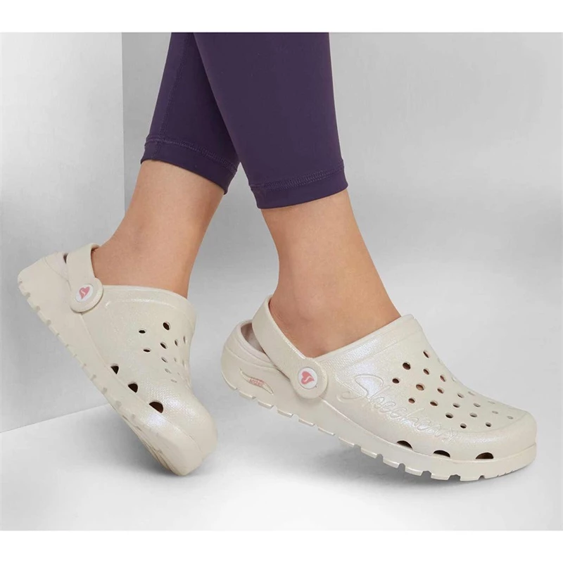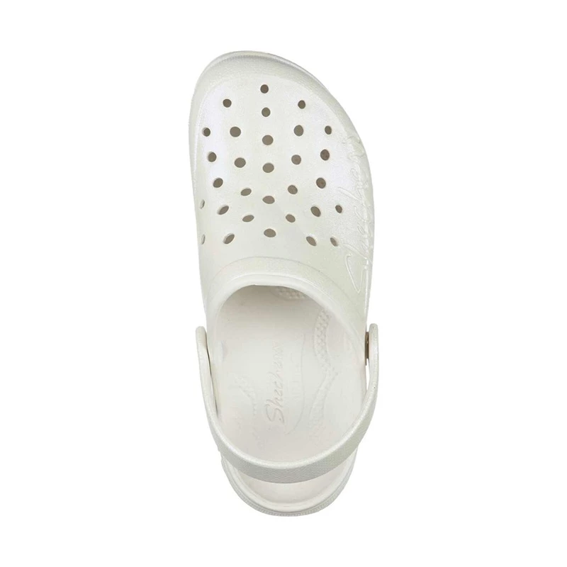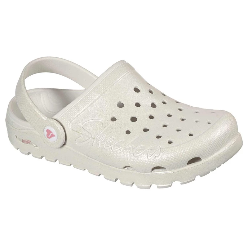 Add supportive comfort that feels like magic with the Foamies; Arch Fit; Footsteps – Pixie Dust shoe. This low backed convertible casual slip-on clog features a flexible pearlized finish EVA foam upper with a Luxe Foam; and cushioned Arch Fit; footbed.