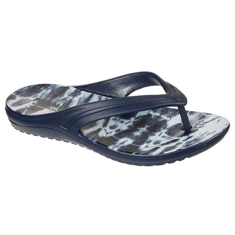 Fill your day with easy comfort wearing Foamies; Bay Breeze. This thong sandal features a smooth flexible EVA foam upper and colorful tie-dye print contoured footbed.