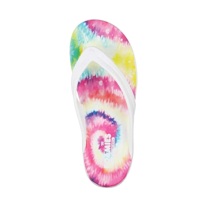 - Contoured comfort footbed with a tie-dye print