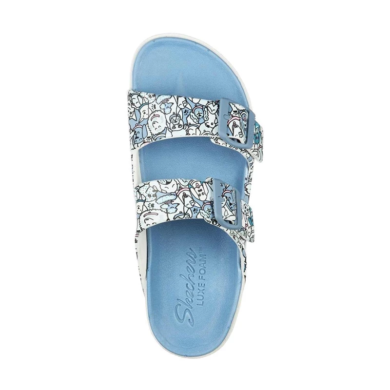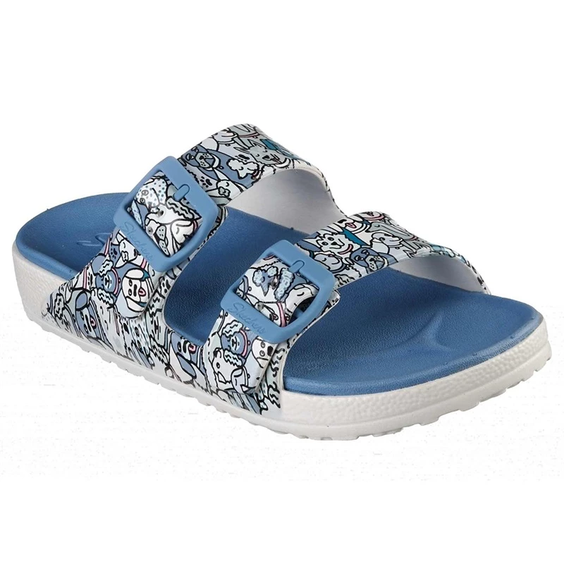 Wag-worthy style and easy-wearing comfort combine in Foamies; Cali Breeze 2.0 – Pup Party. This dual buckle strap slide sandal features a sculpted flexible EVA foam upper with an allover ‘Woof Party’ dog themed print in a casual comfort and contoured Luxe Foam; footbed.