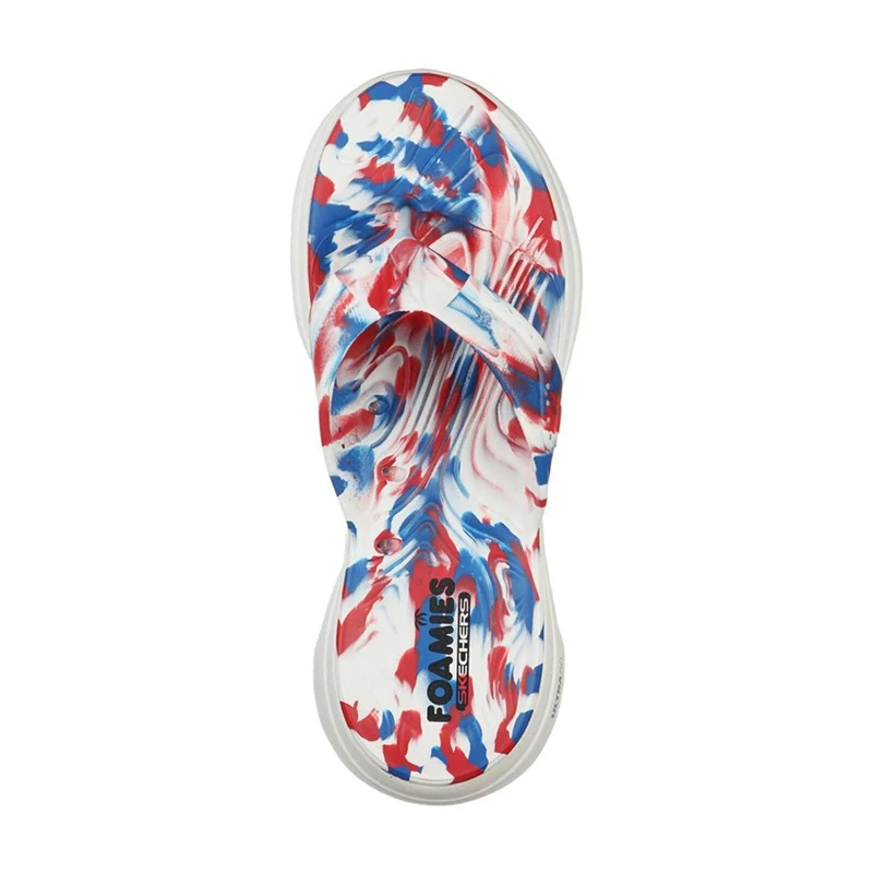 Salute the colors in feet-loving comfort with Foamies:GOwalk 5; – Merica Sweets. This sculpted thong sandal features a perforated flexible EVA upper with an Americana tie-dye print, contoured cushioned footbed and high-rebound Comfort Pillar Technology for added support.
