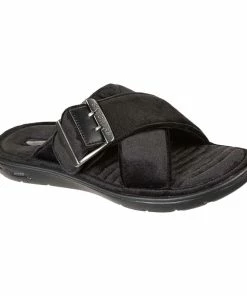 Add a touch of luxurious comfort to your look in GO Lounge; Arch Fit; Lounge – Lovely. This plush velvet slide sandal features a crisscross vamp with a buckle accent, supportive Arch Fit; comfort footbed and a lightweight ULTRA GO; cushioned midsole.