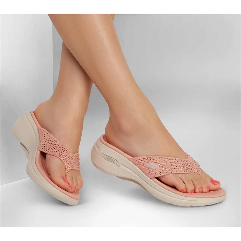Add some sparkle to your day with GOwalk Arch Fit; – Dazzle. This sporty thong sandal features a soft fabric upper with rhinestone detail, plus lightweight ULTRA GO; cushioning midsole, contoured comfort footbed, and podiatrist-certified arch support.