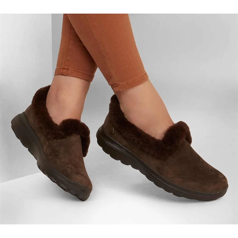 Style yourself cozy in easy-wearing comfort with GOwalk Lounge; – Refresh. This casual slip-on features a washable soft suede upper with a faux-fur trim, Air-Cooled Goga Mat; insole and a lightweight ULTRA GO; cushioned midsole.