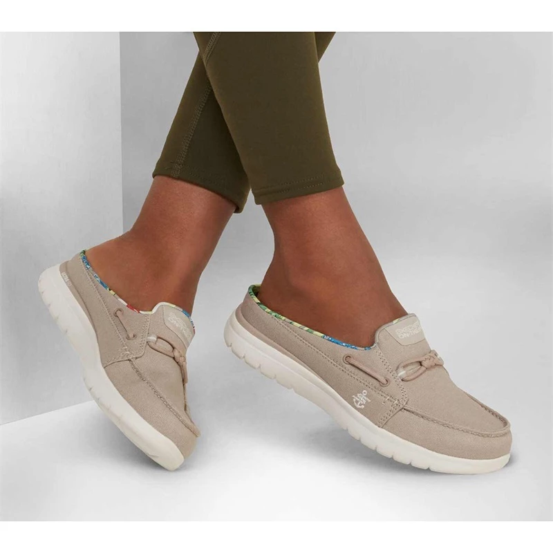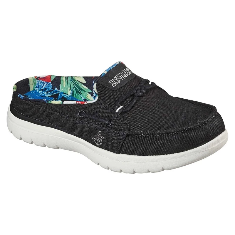 Flexible comfort and laid-back style combine in the On-the-GO Flex – Saltwater shoe. This open-back boat shoe features a soft canvas upper with a tropical print lining, Air-Cooled Goga Mat; insole and a lightweight ULTRA GO cushioned midsole.