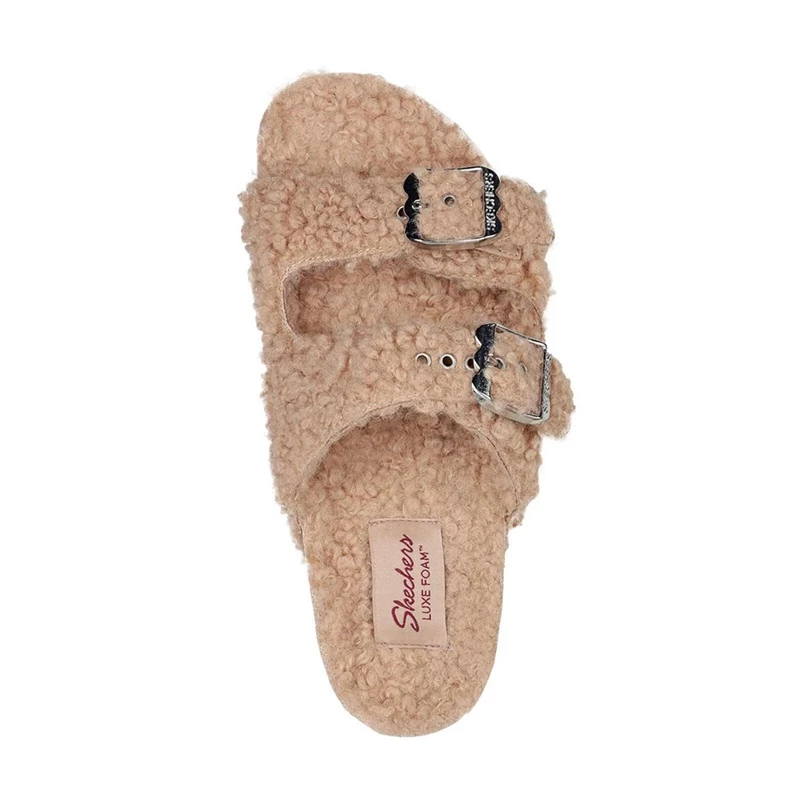 A favorite style gets an update in plush comfort with the Relaxed Fit; Granola – Furry Chic sandal. This comfort two strap slide sandal features a cozy faux-shearling fabric upper with adjustable buckles and cushioned Luxe Foam; footbed.